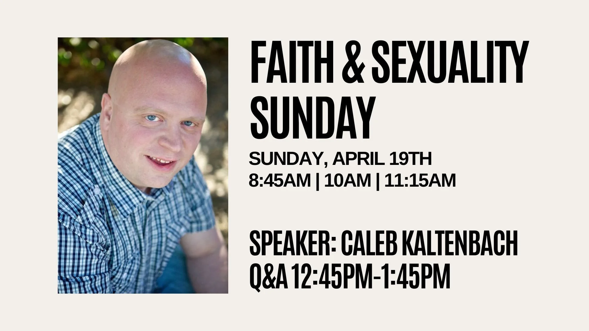 We will also have a Question and Answer time with Caleb after the 11:15 service, starting at 12:45 in the upstairs Youth Room. Have a question you’d like to ask anonymously? Click on the button below!